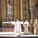 The plot unfolds at speed. A platoon of soldiers arrives in a sleepy village, followed by Dulcamara, a purveyor of miraculous elixirs (it would appear he is not just a doctor but also something of a sorcerer as his arrival is heralded by fantastical chords). Perhaps Donizetti was taking a risk in beginning the opera with four (!) cavatinas (opening arias). One after another all four protagonists are presented to the audience – Nemorino, Adina, Belcore and Dulcamara – but what occurs in no way resembles a dazzling “concert in costumes”. Each cavatina grows into an ensemble with chorus, augmented by stage effects, and in L’elisir Donizetti’s melodious inspiration swells so generously, the romantic bel canto so passionately and the coloratura so magnificent and ecstatic that the flow of the music blends with the flow of the plot and is so gripping that you can forget time itself. Then the opera takes on an uninterrupted crescendo: a duet, a terzetto and then a quartet with chorus…